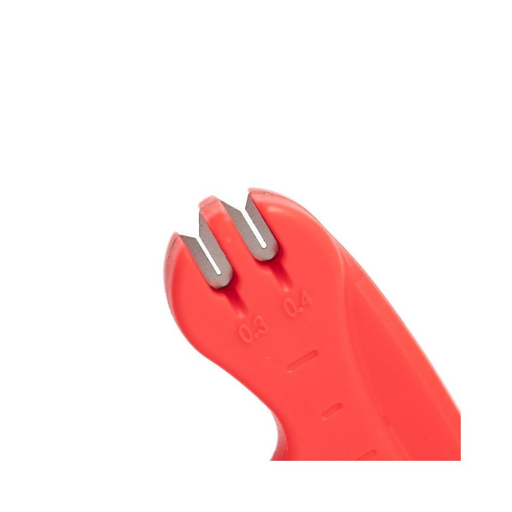 Dispune de un design ergonomic, manerul asigurand o priza ferma in momentul strangerii nodurilor pe carlige sau varteje.