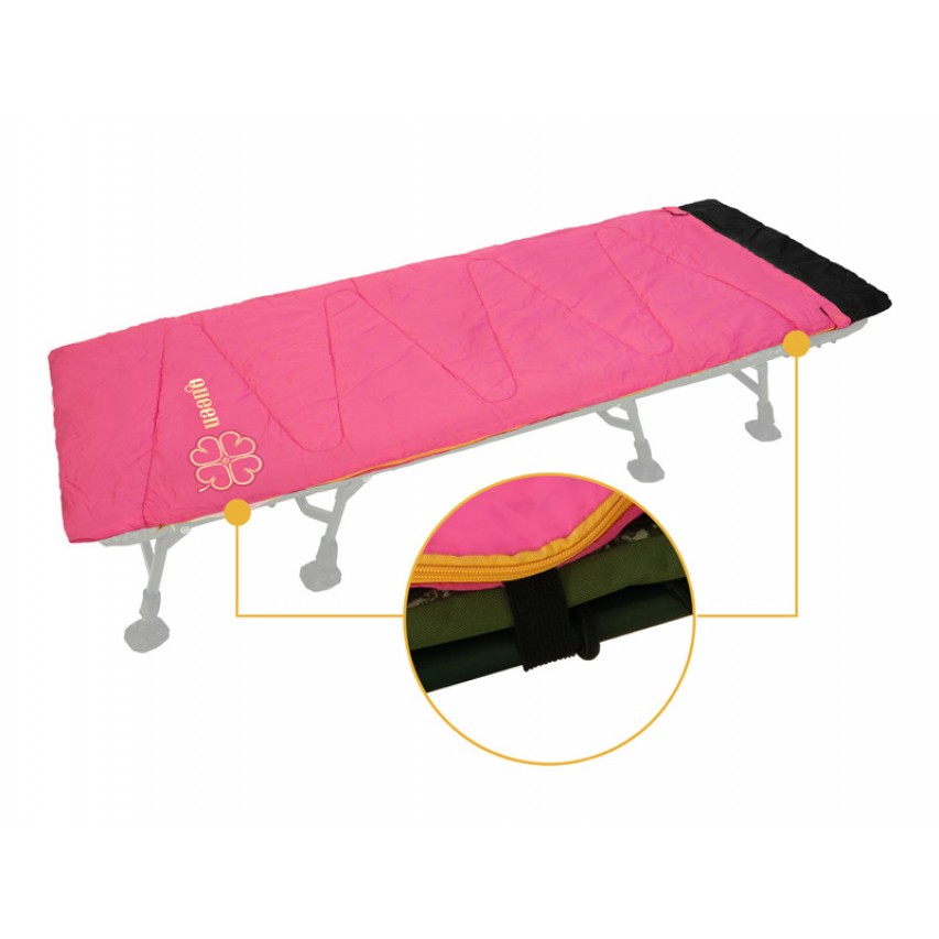 Culoarea roz intens, cu accente aurii, se potrivește perfect cu restul produselor din seria QUEEN, astfel încât să strălucești la propriu pe malul apei. Sacul de dormit vine livrat într-o husă practică pentru transport.