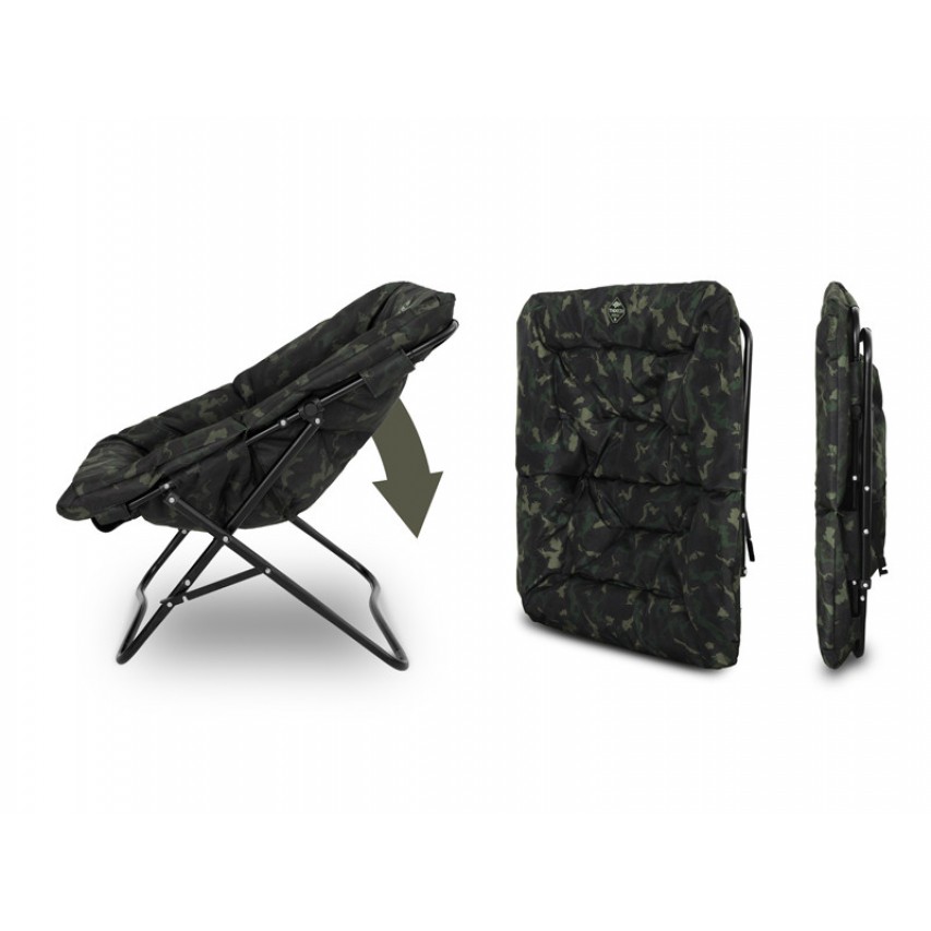 Cel mai mare atu al modelului THIXER este salteaua sa groasă și extrem de moale, căptușită generos atât în interior, cât și de-a lungul întregii margini. Odată ce te așezi, salteaua practic te „îmbrățișează” – îți va fi greu să te mai ridici, chiar și când trage peștele! Materialul textil este un 600D rezistent, imprimat cu modelul original camo BANX, ceea ce garantează durabilitate în timp, chiar și în condiții de utilizare frecventă.