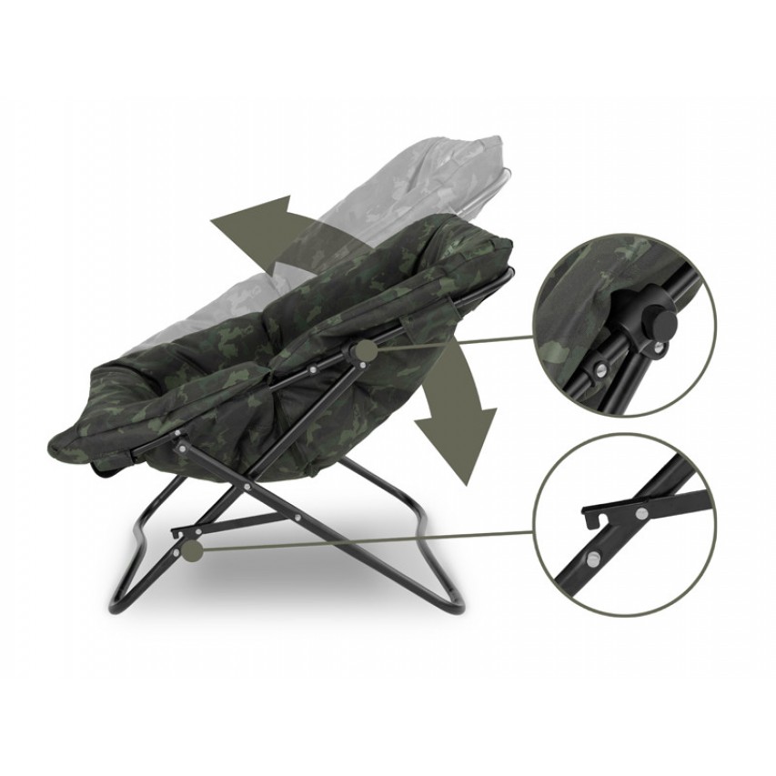 Modelul THIXER se remarcă prin forma sa clasică, pătrată, dar extrem de confortabilă, oferind susținere stabilă și relaxare completă pentru întregul corp, chiar și în timpul sesiunilor lungi de pescuit.