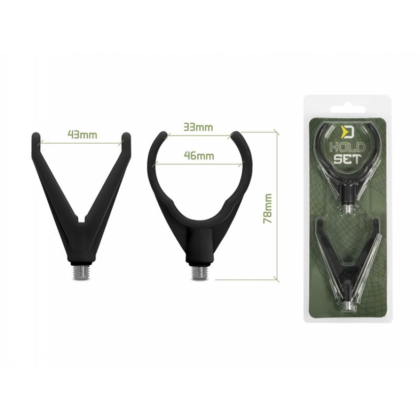 HoldSET este fabricat din material plastic rezistent de culoare neagră iar, datorită caracterului practic și prețului accesibil, este potrivit atât pentru începători, cât și pentru pescarii cu experiență. Suportul posterior are formă de U, permițând fixarea în siguranță a lansetelor cu mânere de diferite dimensiuni. Suportul frontal are formă de V, prevăzut cu un canal care permite firului să alunece liber în momentul în care apare o trăsătură.
