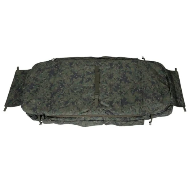 Am reproiectat baza sacului de dormit pentru a imbunatati compatibilitatea cu o varietate de configuratii de picioare diferite, oferind o potrivire mai integrata si o senzatie de sistem unitar cu patul, odata atasat. Sacul de dormit poate fi folosit si pe paturile Trakker standard cu 6 picioare sau 8 picioare late, precum modelele RLX Camo 6 & 8 beds.